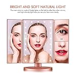Flymiro Tri-fold Lighted Vanity Makeup Mirror with 3x/2x Magnification,21 LEDs Light and Touch Screen,180 Degree Free Rotation Countertop Cosmetic Mirror,Travel (Rose Gold)