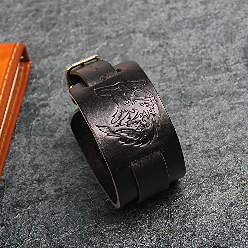 TURTLEDOVE Mens Leather Cuff Bracelet – Wolf Head Bracelet Wide Belt, Gift Ideas for Brother, Dad, Boyfriend, Husband