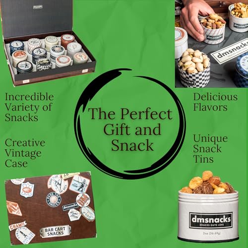 Snack Box Gift Basket, Birthday Gift for Men, Food Care Package, Unique Tins of Assorted Nuts, Snacks in Stunning Case – Treat for Men, Women, Dad, Friends, Family