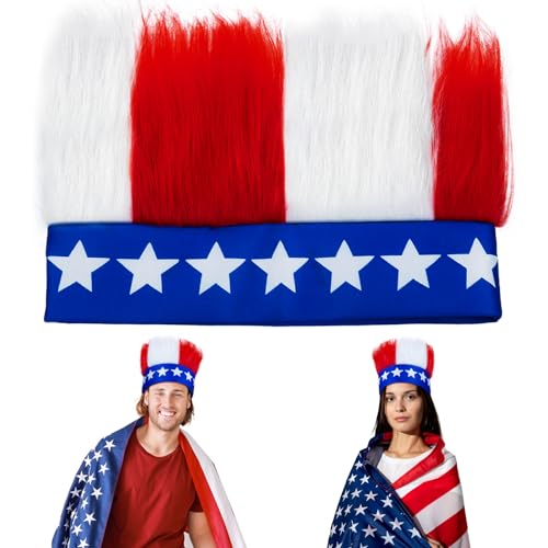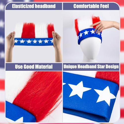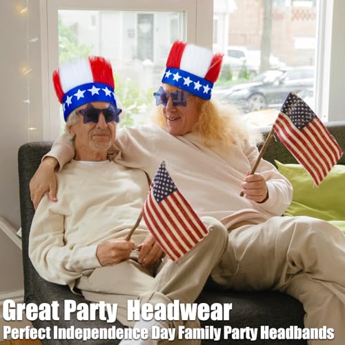Sumkita USA Headband, 4th of July Headband, Patriotic Headbands, Red White and Blue Hairy Stars Headband, Funny Hat, Independence Day Theme Party for Fourth of July