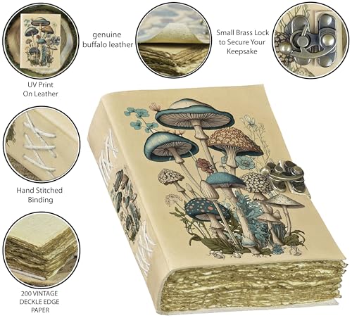 MUSHROOM JOURNAL – Leather journal Mushroom witchcraft book of shadows notebook is made with 200 pages of Antique Paper which looks like it was pulled from history. You will fall in love with the the antique handmade cotton paper which is unique to our Vintage Journal Notebook