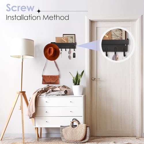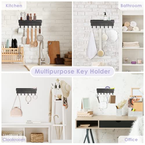 Well Made: Wall mount key holder is using high durability metal material, sturdy construction; surface matte black finish, no sharp edges; small and sleek look blends well with any decor; hang keys and store mails, keep in order and within arms reach