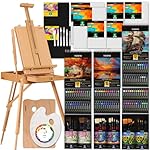 [All IN ONE Professional Painting Kit] Unleash your creative spirit with our painting set! You can start creating as soon as you get it. It includes all the painting supplies you need to start creating right away: beech wood french easel, 96 paints set (Oil, Watercolor, Acrylic), 2 stretched canvases, 6 white & black canvases panels, 6 palette knives, wooden & plastic palette, 3 painting pads, 30 paintbrushes, paint knives, and color wheel.