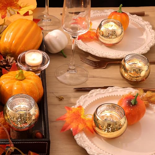 Volens 24PCS Gold Votive Candle Holders for Table Centerpieces, Round Mercury Glass Candle Holders Bulk for Wedding, Birthday, Anniversary, Parties, and Holiday Decorations