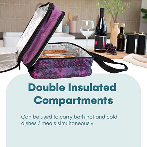 VP Home Double Casserole Insulated Travel Food Containers Carry Bag – Henna Tattoo Design for Trip Birthday Party, Mother’s Day, Grocery Store, Supermarket, Outdoor Picnic, and More – Lunch Bag