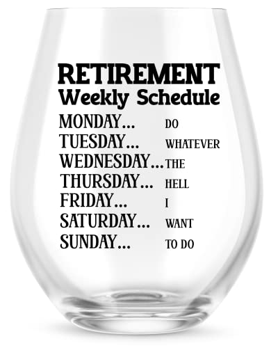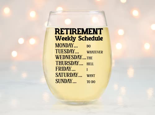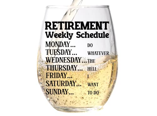 Retirement Gift for Women – Best Retirement Gifts for Mom, Teacher, Nurse, Friend or Coach – Funny Wine Glass with Weekly Schedule – Classy & Thoughtful Retired Women Present