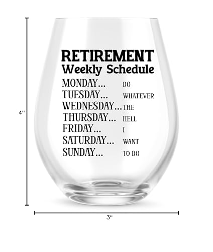 Be the first to review “Retirement Gift for Women – Best Retirement Gifts for Mom, Teacher, Nurse, Friend or Coach – Funny Wine Glass with Weekly Schedule – Classy & Thoughtful Retired Women Present”