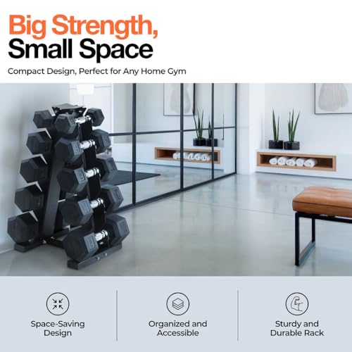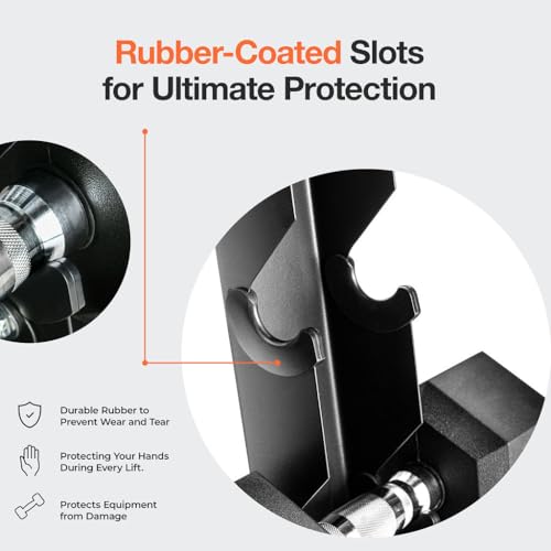 Convenient A-Frame Rack: Keep your workout area neat and organized with the included A-frame rack. This smart design secures your dumbbell weights while maximizing floor space, making it an ideal storage solution for any weight set with bar.