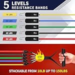Personal home gym: Our resistance band set includes 5 exercise bands, 1 door anchor, 2 cushioned handles, carrying case and user manual to allow you to perform the widest variety of resistance training exercises possible at home.