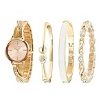TIME100 Women’s Bangle Watch and Rose Gold Watch Chain Bracelets Premium Crystal Accented Bracelet Set W50888L