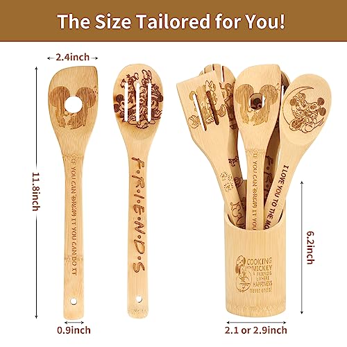 Wooden Spoon for Cooking Cartoon Wooden Spoons Bamboo Utensils Set Kitchen Decoration- Birthday Gift Kitchen Accessories with Cute Apron Oven Mitt Potholder- Mouse Kitchen Gifts for Women Friends 9PCS
