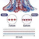33” 7 mm 4th of July Beaded Necklace: Each Independence Day beads necklace is 33 inches long and has 7 mm beads. The party beads size make they are suitable for everyone, they can wear them as carnival decorations for dress-up party