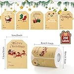 Yoget 250 Labels Chirstmas Gift Tags Stickers, Xmas Kraft Gift Tags Stickers Name Tag Labels, Self Adhesive Christmas Tag for Cards Gift Boxes (50x70mm, 6 Designs)