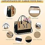 YOOLIFE Gifts for Women – Initial Jute Tote Bag & 2 Makeup Bags Personalized Gifts for Women Teacher Mom Friend Birthday