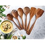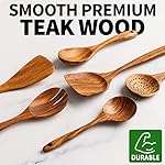 Zulay Kitchen 6-Piece Wooden Cooking Spoons Set â Heat-Resistant, Smooth Teak Utensils with Comfort Grip â Lightweight & Durable â Easy to Clean, Perfect for Non-Stick Cookware
